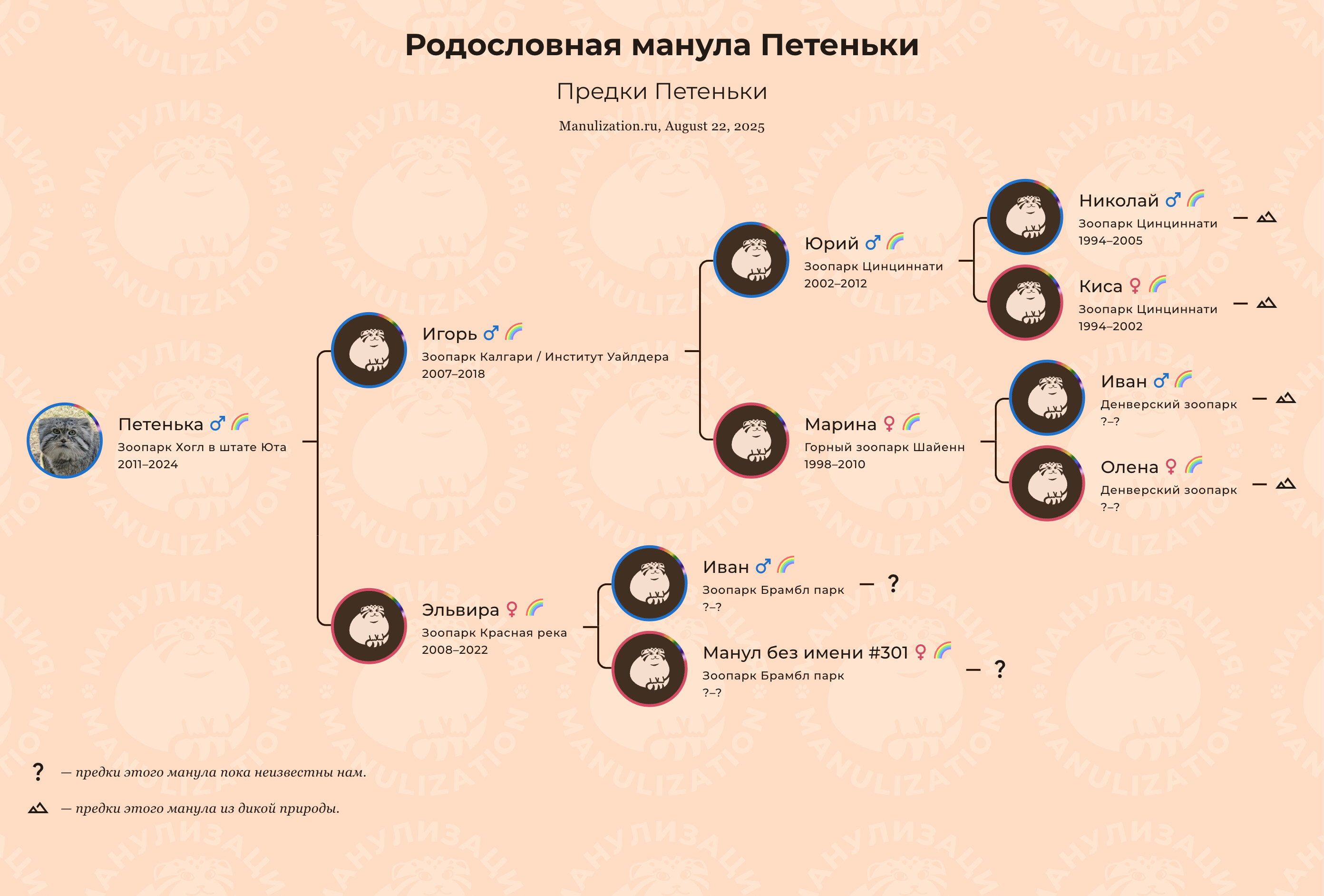И смотрите: по линии папы легендарного Петеньки у нас теперь есть вся родословная вплоть до манулов, вышедших из дикой природы!