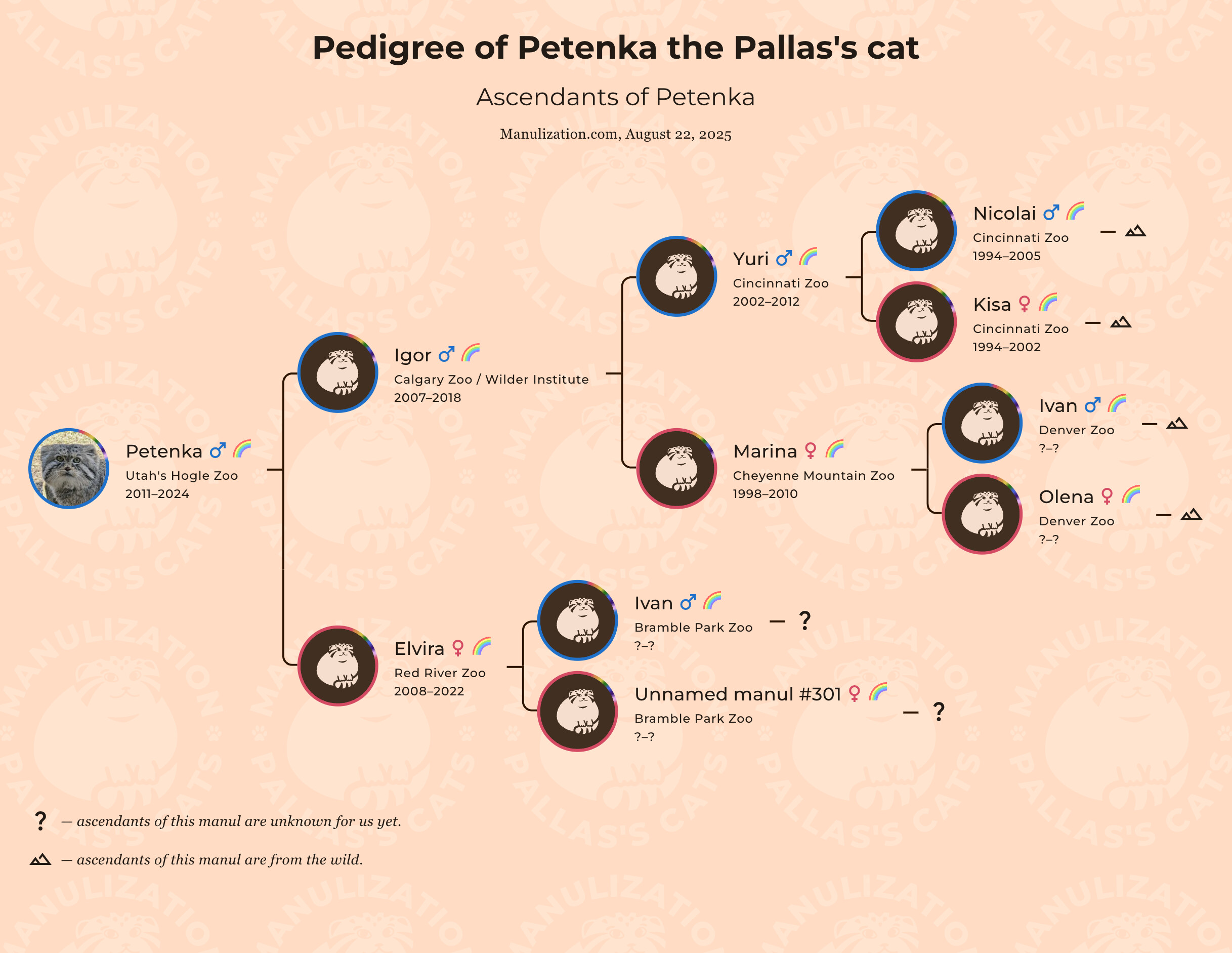 And look: through the line of the father of the legendary Petenka we now have the entire pedigree traced all the way back to the manuls that came from the wild!